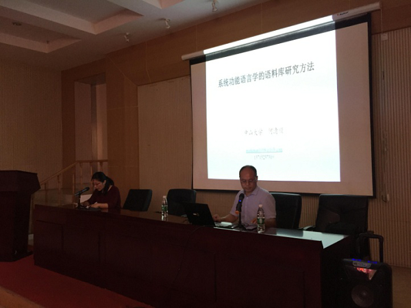 首先,何清顺博士以两个简单的英语句子为例,深入浅出地介绍了乔姆斯基形式主义语言学与韩礼德系统功能语言学(SFL)的区别。在此基础上,引出系统功能语法中小句的三个组成部分:环境(circumstance)、参与者(participant)与过程(Process)并与传统的句法分析进行了对比。接着,何博士图示了SFL中系统语法与功能语法之间的关系:系统语法着重研究小句成分的选择关系;功能语法则研究构建社会经验与调整社会关系的句法功能。然后,何博士介绍了国际上常用的几种语料库及其相关应用软件,并结合他自己的研究经验介绍了他如何用语料库研究方法进行功能语言学的相关研究。他以他自己对“be going to 语法化”进行的实证研究为例,生动而具体地介绍了语言研究与其它科学研究一样遵守着“观察—数据—假设—论证—结论”这一通行规律。